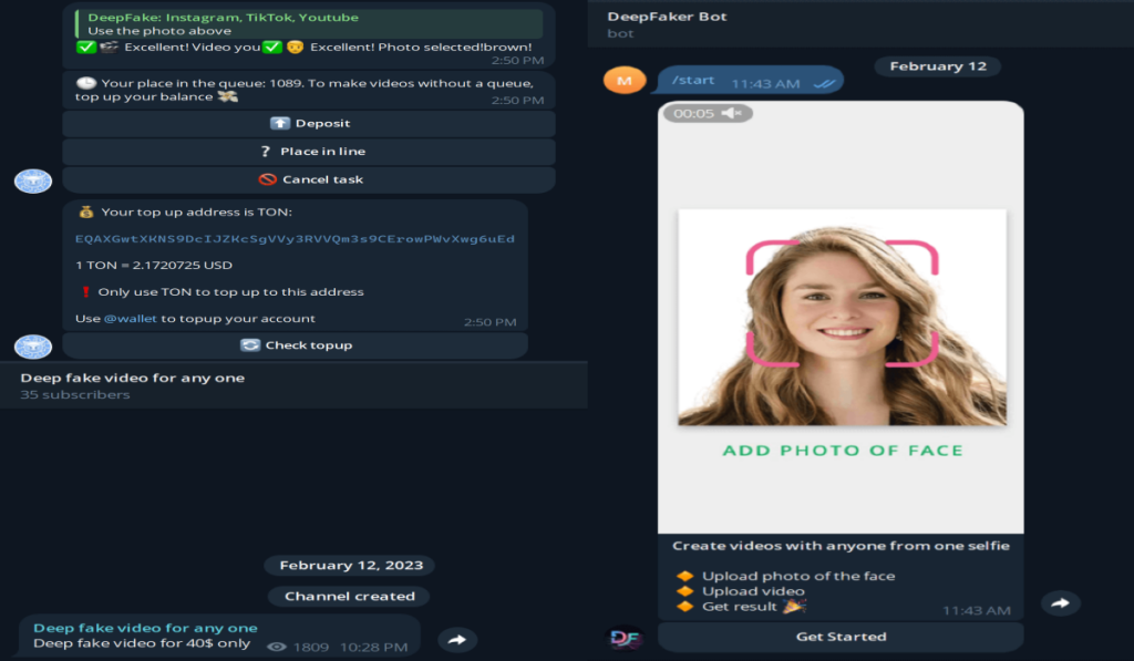 Deepfake technology allows users to create “fabricated audiovisual content,” which poses a threat to public opinion and democratic institutions, researchers noted. With over 3,000 repositories on GitHub and hundreds of channels on Telegram (at least 400-500), deepfake services range from automated bots to personalized services. Pricing varies from $2 per video to $100 for multiple attempts, making it affordable to commission deceptive content.