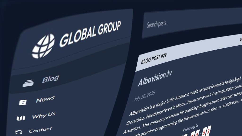 GLOBAL GROUP is a newly emerged Ransomware-as-a-Service (RaaS) operation that has been active since early June 2025. The group has targeted multiple sectors globally, including media and healthcare, with Albavisión listed as its 29th claimed victim since its launch.