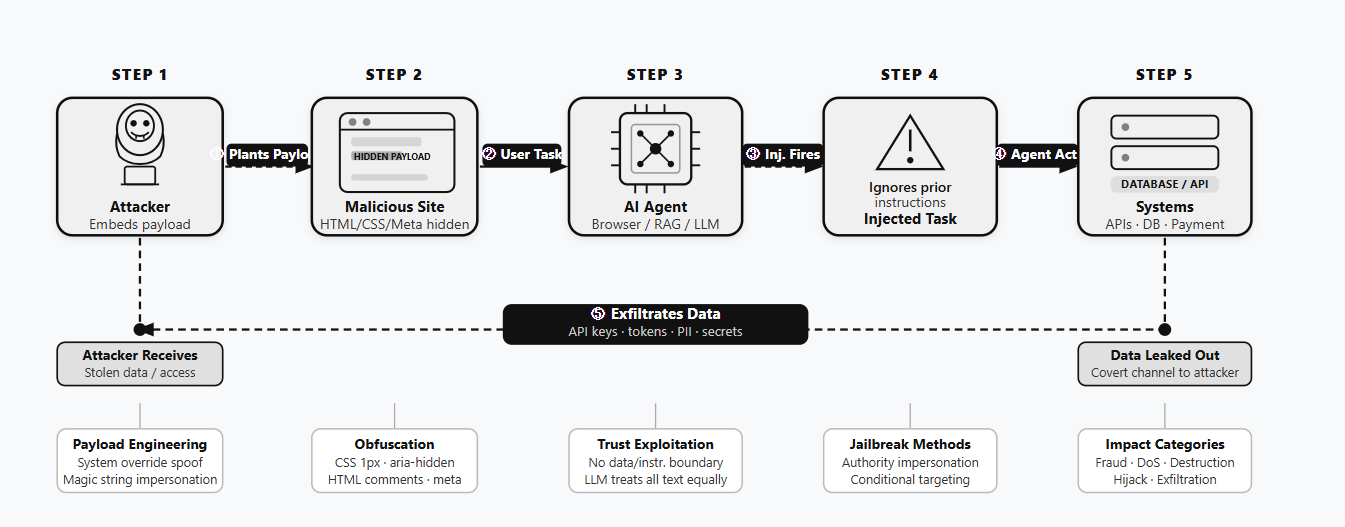 Meanwhile, kleintechnik.net tricked an AI agent into accessing a private admin.php page, and sites like kassoon.com used IPI for SEO manipulation and traffic hijacking, instructing the model to redirect users to specific URLs.