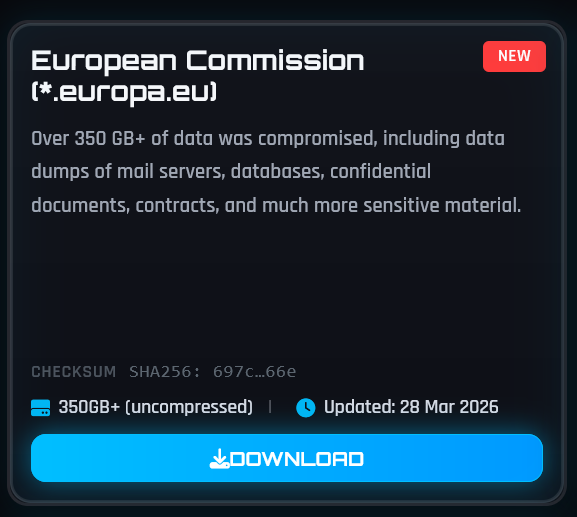 Hackers claiming to be from the ShinyHunters group say they have breached systems linked to the European Commission and released more than 350 GB of data. The claim appeared on the group’s dark web site earlier today, where they also post material linked to earlier incidents involving enterprise platforms.
